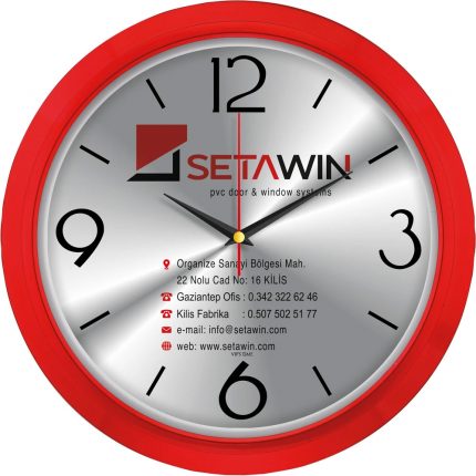 * Ebat: 35 cm * Çerçeve: Plastik * Kadran: Metal * Saniye: Akar * Cam: Mineral * Baskı: Serigrafi, UV